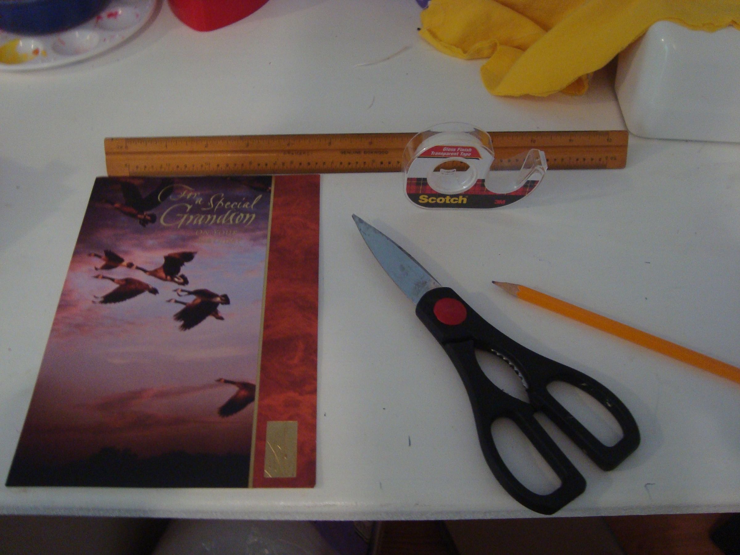 Work from the blank side of the card, which will be the inside of your box.